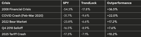 Max Drawdown: -29.0% (TrendLock) vs -55.2% (SPY)