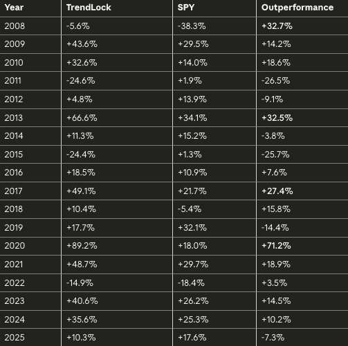 So when I tell you TrendLock has returned 21% annually since 2007, your BS detector should be going off.