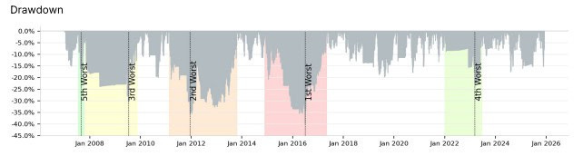 It will test you. There will be months where you question everything. The 2015-2016 period had a -29% drawdown that took nearly a year to recover.