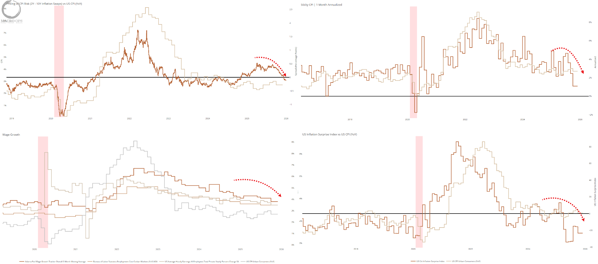 10. Will we see a disinflationary boom in 2026? It certainly looks probable... All our inflation leads continue to fall, with some outright collapsing, and all signs point to this continuing in the first half of 26. Accelerating AI adoption is lowering unit labor costs, allowing companies to protect margins without raising prices on consumers. Additionally, due to CPI’s 12m+ lag to shelter (core CPI’s most significant component), inflation must mechanically fall in the first half of this year.