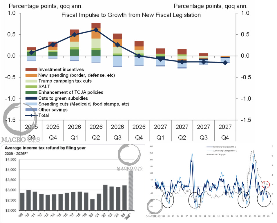 Policy Inflection Point: The start of 2026 marks a key shift in policy, with fading tariff uncertainty and a reversal in fiscal impulse from a Q4 2025 drag (-0.6% of GDP) to an early 2026 tailwind (+0.5% to +0.9% of GDP) driven by the “One, Big, Beautiful Bill Act.”