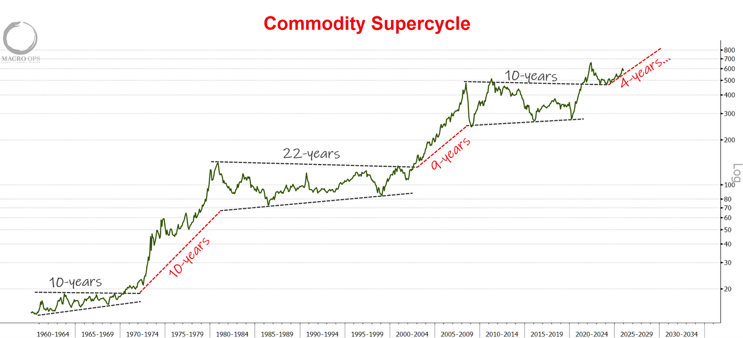 12. This inspired me to update this chart I shared back in early 2022. On a short-term basis, positioning and sentiment have become quite stretched in certain commodities (gold, copper, etc), and we’ll likely see a shakeout sometime in the first quarter of 2026. But… as these two charts show, this commodity supercycle still has a long way to go.