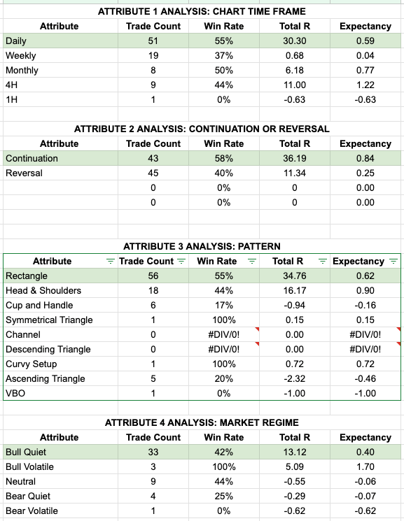 Look at my most profitable, highest win-rate/expectancy attributes: